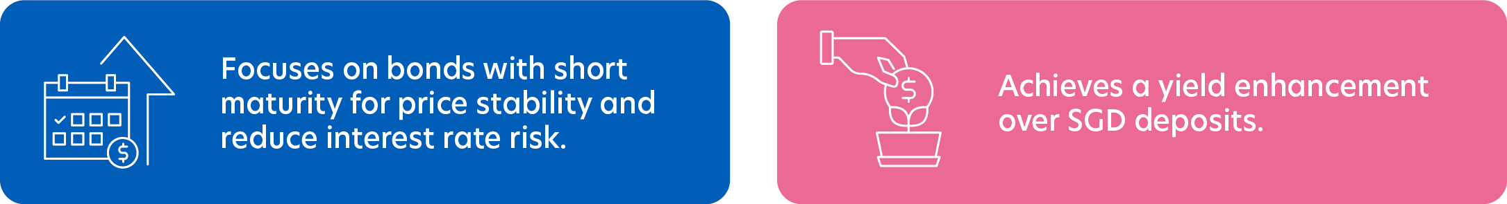| Investment Objective | To invest substantially all its assets in money market and short-term interest-bearing debt instruments and bank deposits with the objective of achieving a yield enhancement over Singapore dollar deposits. |