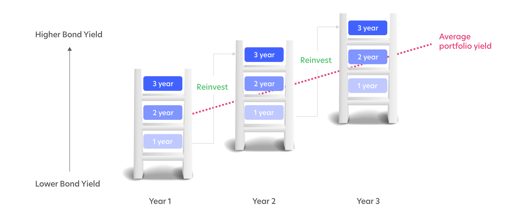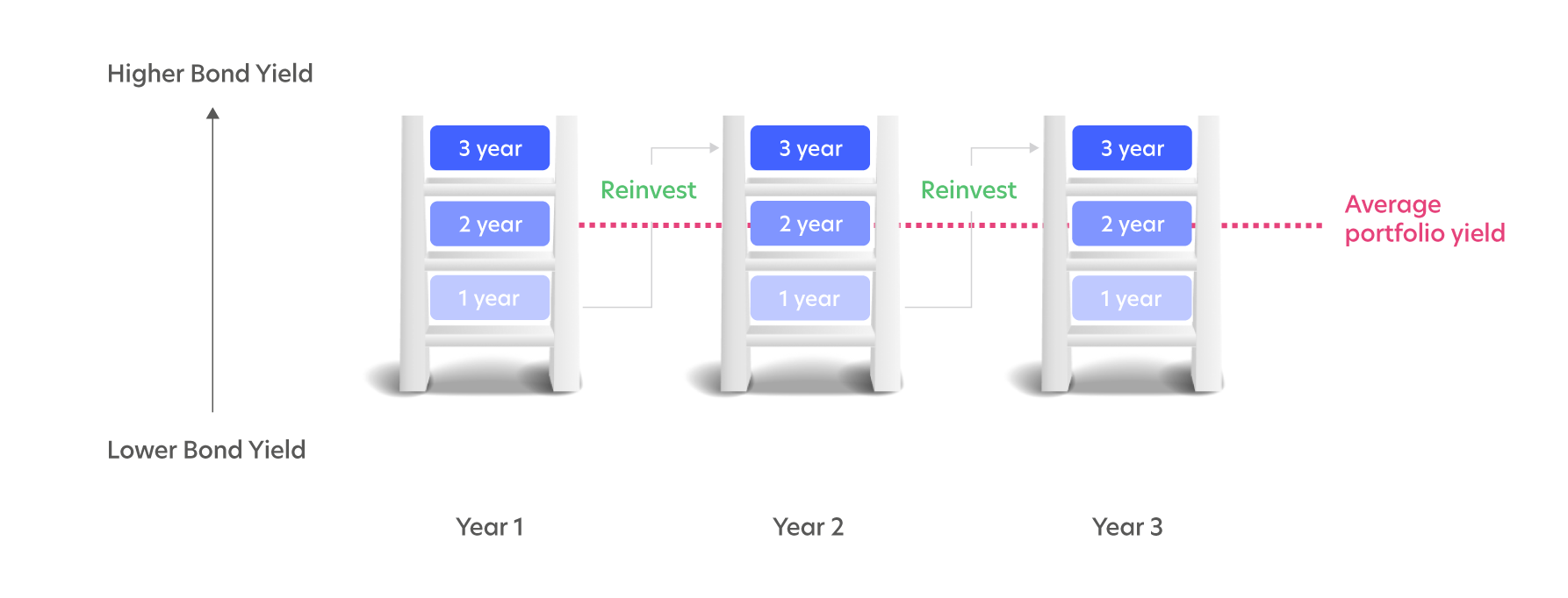 The Fund invests in investment grade bonds with different maturity dates across a three-year timeframe. This way, investment maturities of bonds are spread across one-year, two-year and three-year horizons to enhance the overall return. This strategy tends to and has shown to work in both environments of rising or falling interest rates.