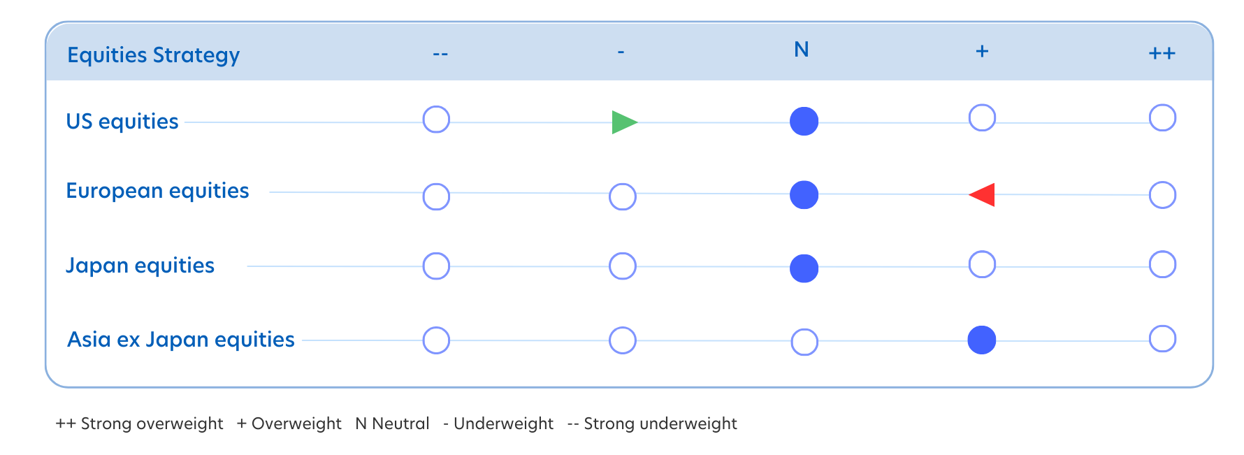 As such, we continue to take a neutral position across asset classes. This neutrality is strategic, rather than reflecting a lack of conviction. This coming quarter, we have raised our probability of sustained growth from 40 to 50 percent, and lowered our probability of a recession or stagflation-like conditions from 30 to 25 percent each. We believe a neutral positioning is the most resilient and offers the best chance of achieving positive returns across a range of outcomes.