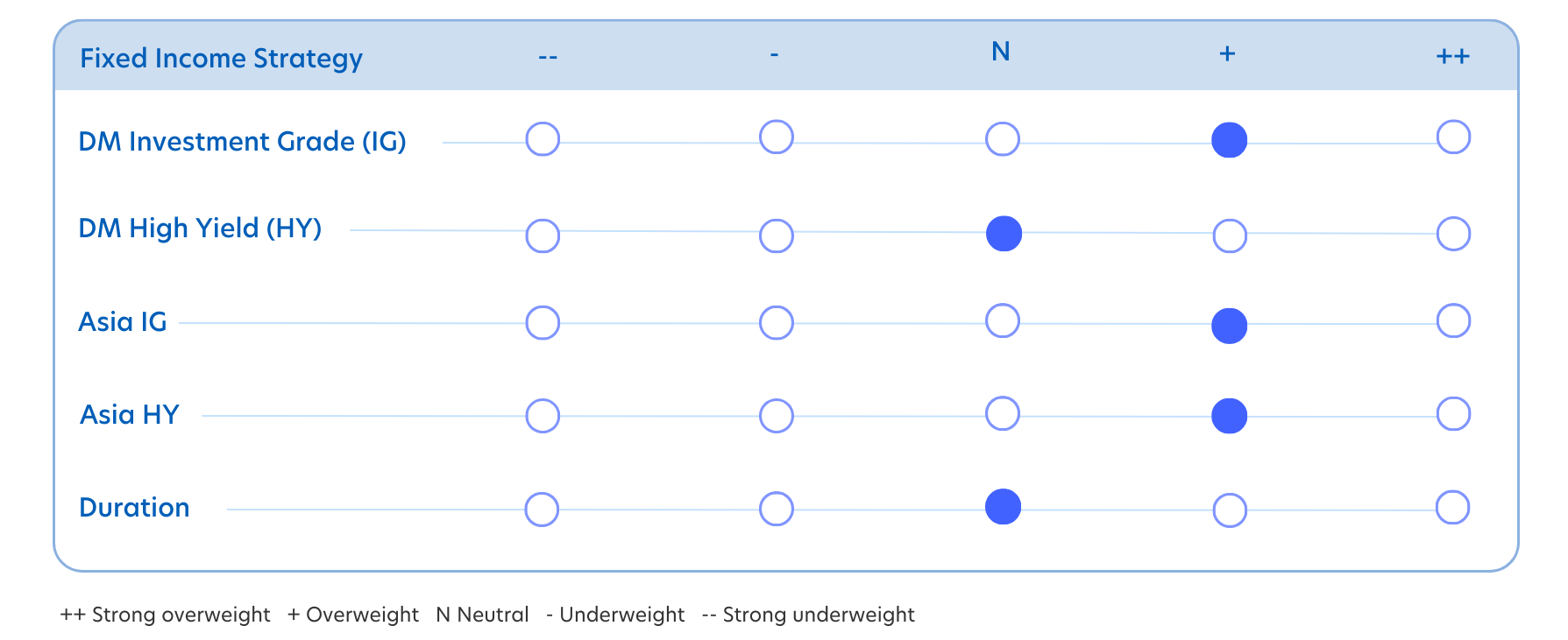 The Fed’s easing cycle has resumed. After last week’s 25 bps cut, the market is now pricing in another one or two cuts before the year ends. Given our base case that developed market economies will remain resilient and all-in yields will stay relatively high, we think this continues to be a good environment to hold bonds for carry. However, we worry that bond markets may be underestimating the potential for higher inflation. As such, we remain neutral on both credit and duration, with 10-year US Treasury yields expected to trade between 4.0 to 4.5 percent.