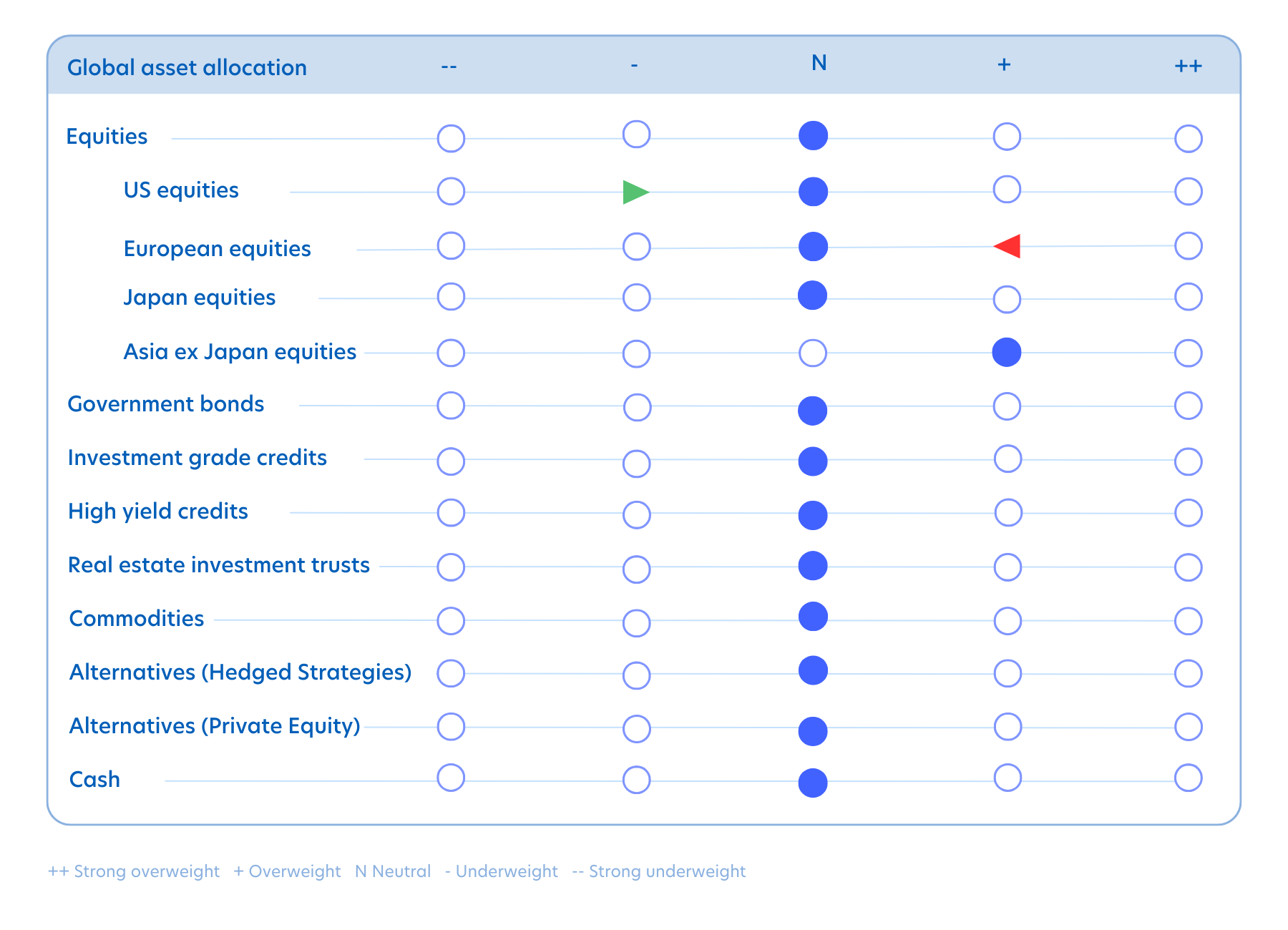 In this environment, the team continues to maintain a neutral stance across asset classes, supported by a diversified mix of safe-haven assets including gold and US Treasuries. Equities and fixed income remain at neutral weights, with a focus on Europe and Asia, where valuations and growth prospects are more favorable.